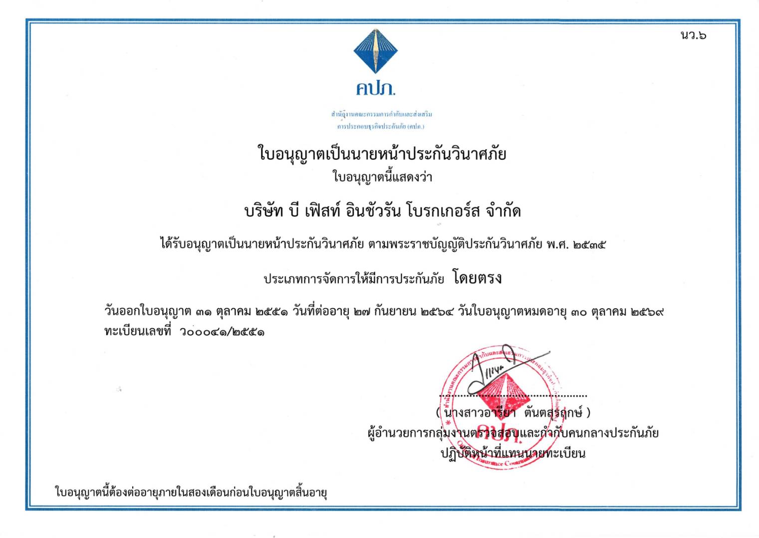 บริษัท บีเฟิสท์ อินชัวรัน โบรกเกอร์ส จำกัด เป็นตัวแทนขายประกันภัยประกันชีวิตมากกว่า 20 บริษัท ทั้งประกันภัยรถยนต์, อัคคีภัย, งานก่อสร้าง (C.A.R.), ประกันความรับผิดทาง วิชาชีพ, ประกันภัยผู้ตรวจสอบอาคารประเภท บุคคล และ นิติบุคคล, ประกัน ป้ายโฆษณา, ประกันร้านทอง, ประกันเชื้อเพลิง, ประกันชีวิต, ประกันสุขภาพเดี่ยว, ประกัน สุขภาพกลุ่ม ฯลฯ ด้วย บริการถึงที่ อย่างมืออาชีพ หลากหลาย รวดเร็ว และครบวงจร ช่วยท่านประหยัดเวลาและค่าใช้จ่าย
